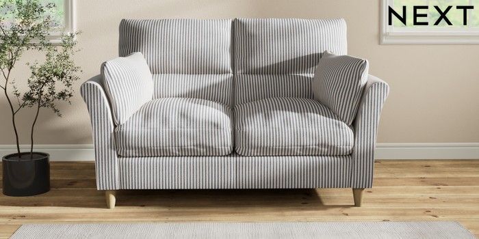 7.2.10 Buy Hartley Highback Relaxed Sit 2 Seater Sofa Chenille Stripe Slate Blue Low Conical - Light from the Seasons online shop Click here to use our website with more accessibility support, for example screen readers