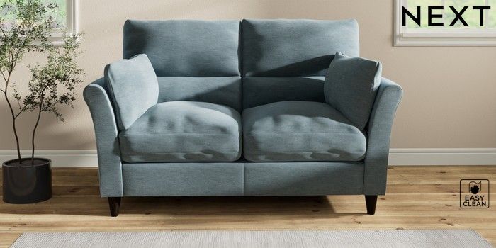 7.2.10 Buy Hartley Highback Relaxed Sit 2 Seater Sofa Fine Chenille Easy Clean Mid Blue Low Conical - Dark from the Seasons online shop Click here to use our website with more accessibility support, for example screen readers