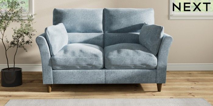 7.2.10 Buy Hartley Highback Relaxed Sit 2 Seater Sofa Plush Chenille Light Blue Low Conical - Mid from the Seasons online shop Click here to use our website with more accessibility support, for example screen readers