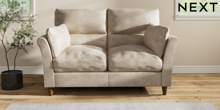 7.2.10 Buy Hartley Highback Relaxed Sit 2 Seater Sofa Plush Chenille Light Natural Low Conical - Mid from the Seasons online shop Click here to use our website with more accessibility support, for example screen readers