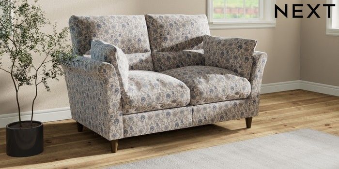 7.3.1 Buy Hartley Highback Relaxed Sit 2 Seater Sofa Relaxed Linen Look Print Woodblock Floral Blue Low Conical - Mid from the Seasons online shop Click here to use our website with more accessibility support, for example screen readers