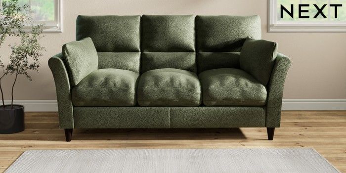 7.3.1 Buy Hartley Highback Relaxed Sit 3 Cushion 3 Seater Sofa Boucle Chenille Dark Moss Green Low Conical - Dark from the Seasons online shop Click here to use our website with more accessibility support, for example screen readers