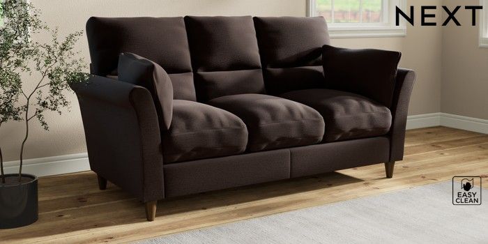 7.3.1 Buy Hartley Highback Relaxed Sit 3 Cushion 3 Seater Sofa Fine Chenille Easy Clean Chocolate Brown Low Conical - Mid from the Seasons online shop Click here to use our website with more accessibility support, for example screen readers