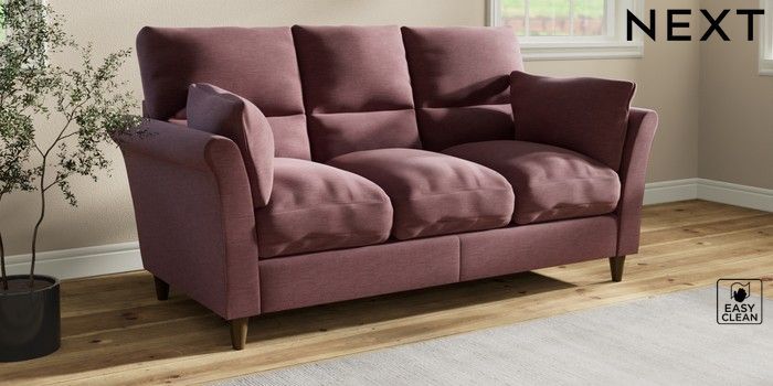 7.3.1 Buy Hartley Highback Relaxed Sit 3 Cushion 3 Seater Sofa Fine Chenille Easy Clean Mid Mulberry Purple Low Conical - Mid from the Seasons online shop Click here to use our website with more accessibility support, for example screen readers