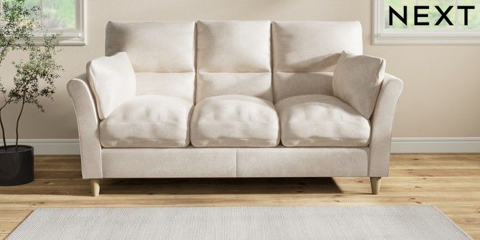 7.2.10 Buy Hartley Highback Relaxed Sit 3 Cushion 3 Seater Sofa Plush Chenille Oyster Low Conical - Light from the Seasons online shop Click here to use our website with more accessibility support, for example screen readers