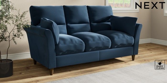 7.3.1 Buy Hartley Highback Relaxed Sit 3 Cushion 3 Seater Sofa Plush Velvet Easy Clean Airforce Blue Low Conical - Mid from the Seasons online shop Click here to use our website with more accessibility support, for example screen readers