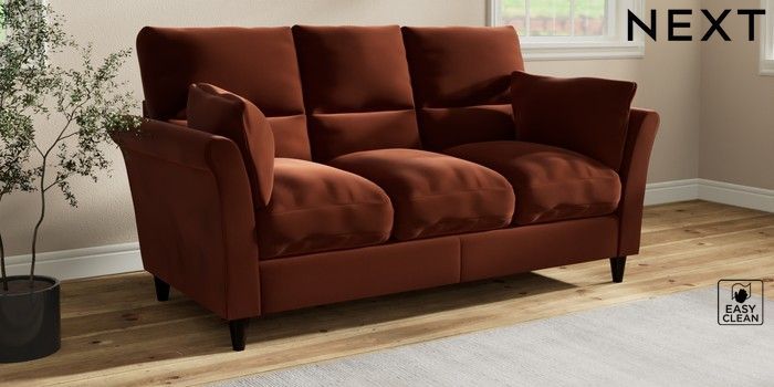 7.3.1 Buy Hartley Highback Relaxed Sit 3 Cushion 3 Seater Sofa Plush Velvet Easy Clean Ginger Orange Low Conical - Dark from the Seasons online shop Click here to use our website with more accessibility support, for example screen readers
