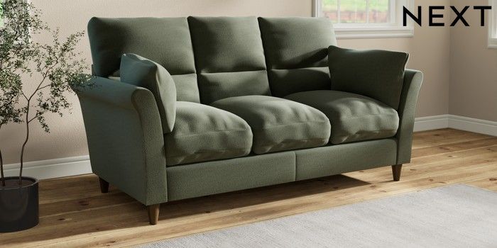 7.3.1 Buy Hartley Highback Relaxed Sit 3 Cushion 3 Seater Sofa Relaxed Linen Look Dark Green Low Conical - Mid from the Seasons online shop Click here to use our website with more accessibility support, for example screen readers