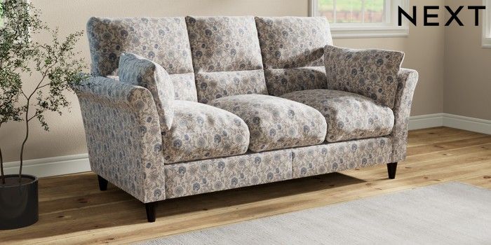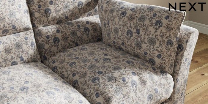 7.3.1 Buy Hartley Highback Relaxed Sit 3 Cushion 3 Seater Sofa Relaxed Linen Look Print Woodblock Floral Blue Low Conical - Dark from the Seasons online shop