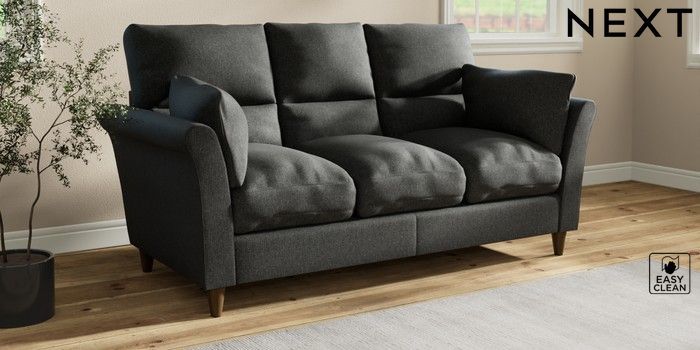 7.3.1 Buy Hartley Highback Relaxed Sit 3 Cushion 3 Seater Sofa Tweedy Blend Easy Clean Charcoal Grey Low Conical - Mid from the Seasons online shop Click here to use our website with more accessibility support, for example screen readers