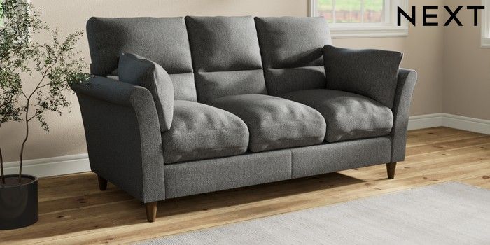 7.3.1 Buy Hartley Highback Relaxed Sit 3 Cushion 3 Seater Sofa Tweedy Chenille Dark Grey Low Conical - Mid from the Seasons online shop Click here to use our website with more accessibility support, for example screen readers