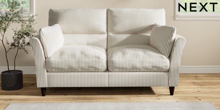 7.2.10 Buy Hartley Highback Relaxed Sit 3 Seater Small Sofa Chenille Stripe Moss Green Low Conical - Dark from the Seasons online shop Click here to use our website with more accessibility support, for example screen readers
