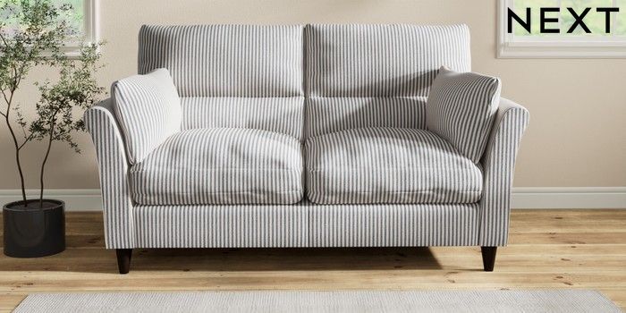 7.2.10 Buy Hartley Highback Relaxed Sit 3 Seater Small Sofa Chenille Stripe Slate Blue Low Conical - Dark from the Seasons online shop Click here to use our website with more accessibility support, for example screen readers