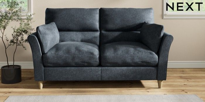 7.2.10 Buy Hartley Highback Relaxed Sit 3 Seater Small Sofa Plush Chenille Slate Blue Low Conical - Light from the Seasons online shop Click here to use our website with more accessibility support, for example screen readers