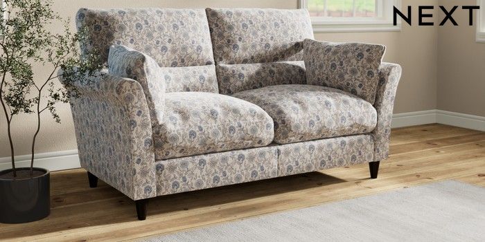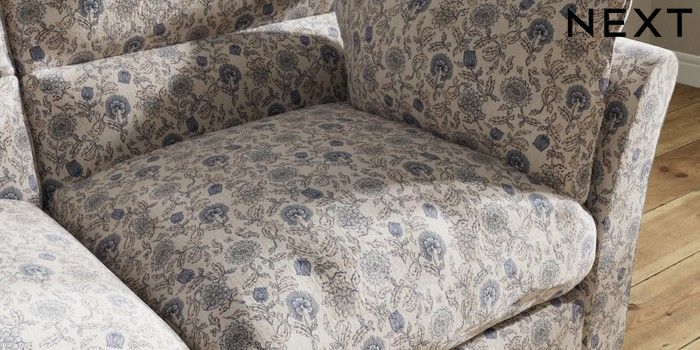 7.3.1 Buy Hartley Highback Relaxed Sit 3 Seater Small Sofa Relaxed Linen Look Print Woodblock Floral Blue Low Conical - Dark from the Seasons online shop Click here to use our website with more accessibility support, for example screen readers