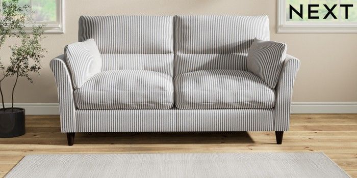 7.2.10 Buy Hartley Highback Relaxed Sit 3 Seater Sofa Chenille Stripe Slate Blue Low Conical - Dark from the Seasons online shop Click here to use our website with more accessibility support, for example screen readers