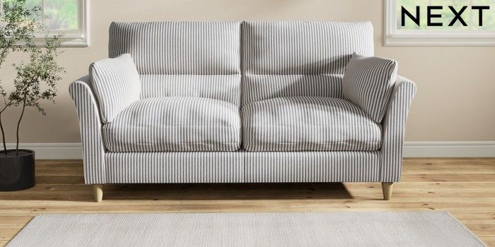 7.2.10 Buy Hartley Highback Relaxed Sit 3 Seater Sofa Chenille Stripe Slate Blue Low Conical - Light from the Seasons online shop Click here to use our website with more accessibility support, for example screen readers