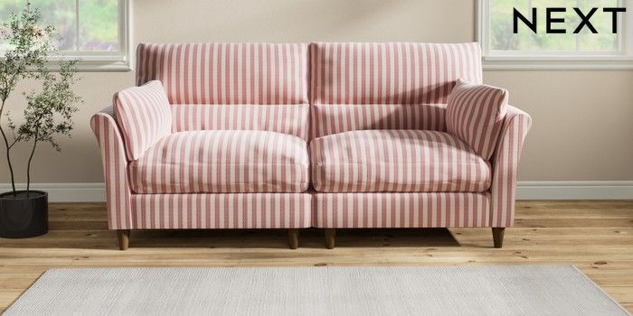 7.2.10 Buy Hartley Highback Relaxed Sit 4 Seater Sofa Bold Chenille Stripe Dark Pink Low Conical - Mid from the Seasons online shop Click here to use our website with more accessibility support, for example screen readers