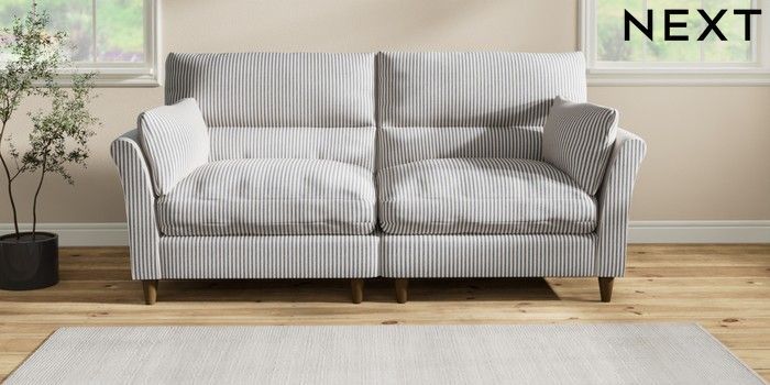 7.2.10 Buy Hartley Highback Relaxed Sit 4 Seater Sofa Chenille Stripe Slate Blue Low Conical - Mid from the Seasons online shop Click here to use our website with more accessibility support, for example screen readers