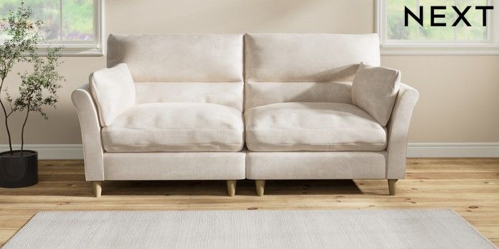 7.2.10 Buy Hartley Highback Relaxed Sit 4 Seater Sofa Plush Chenille Oyster Low Conical - Light from the Seasons online shop Click here to use our website with more accessibility support, for example screen readers