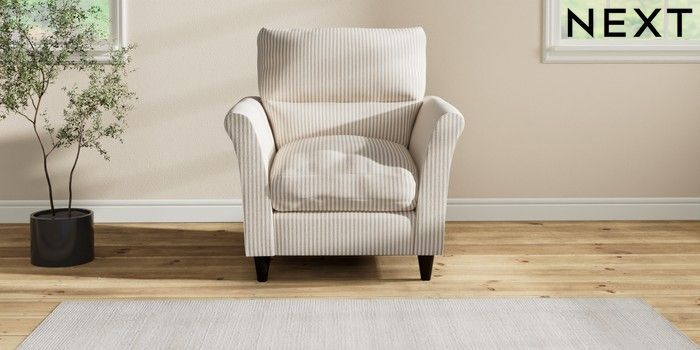 7.2.10 Buy Hartley Highback Relaxed Sit Armchair Chenille Stripe Natural Low Conical - Dark from the Seasons online shop Click here to use our website with more accessibility support, for example screen readers