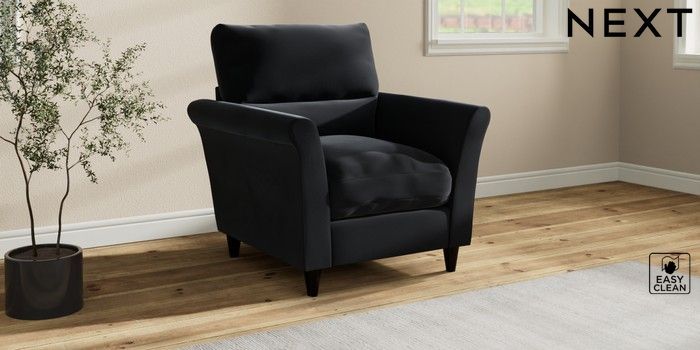 7.3.1 Buy Hartley Highback Relaxed Sit Armchair Plush Velvet Easy Clean Charcoal Grey Low Conical - Dark from the Seasons online shop Click here to use our website with more accessibility support, for example screen readers