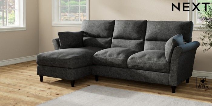 7.2.10 Buy Hartley Highback Relaxed Sit Medium Sofa Chaise - Left Hand Boucle Weave Easy Clean Charcoal Grey Low Conical - Dark from the Seasons online shop Click here to use our website with more accessibility support, for example screen readers