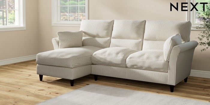 7.2.10 Buy Hartley Highback Relaxed Sit Medium Sofa Chaise - Left Hand Chenille Stripe Moss Green Low Conical - Dark from the Seasons online shop Click here to use our website with more accessibility support, for example screen readers