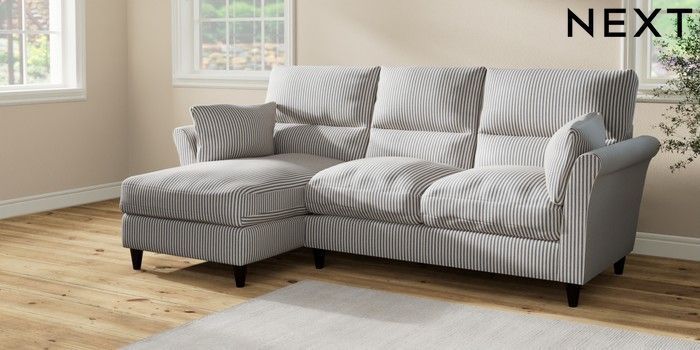 7.2.10 Buy Hartley Highback Relaxed Sit Medium Sofa Chaise - Left Hand Chenille Stripe Slate Blue Low Conical - Dark from the Seasons online shop Click here to use our website with more accessibility support, for example screen readers
