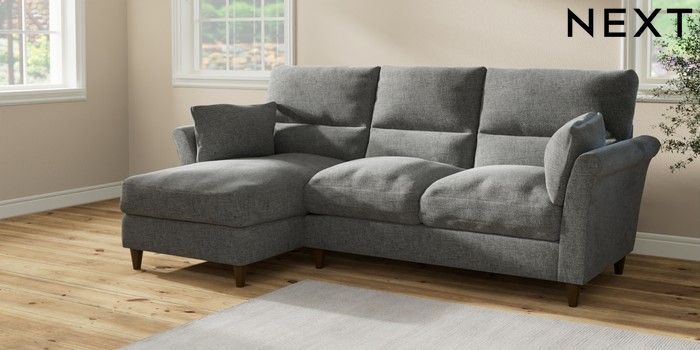 7.2.10 Buy Hartley Highback Relaxed Sit Medium Sofa Chaise - Left Hand Chunky Chenille Dark Grey Low Conical - Mid from the Seasons online shop Click here to use our website with more accessibility support, for example screen readers