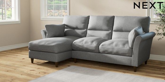 7.2.10 Buy Hartley Highback Relaxed Sit Medium Sofa Chaise - Left Hand Chunky Weave Mid Grey Low Conical - Mid from the Seasons online shop Click here to use our website with more accessibility support, for example screen readers