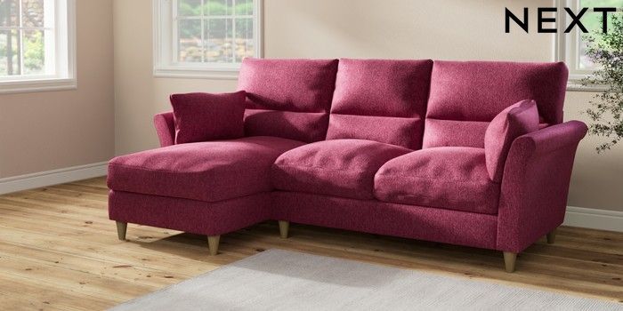 7.2.10 Buy Hartley Highback Relaxed Sit Medium Sofa Chaise - Left Hand Cotswold Chenille Dark Raspberry Pink Low Conical - Light from the Seasons online shop Click here to use our website with more accessibility support, for example screen readers