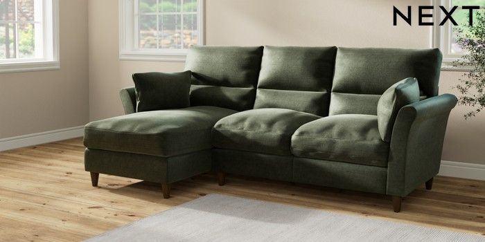 7.2.10 Buy Hartley Highback Relaxed Sit Medium Sofa Chaise - Left Hand Luxe Chenille Mid Green Low Conical - Mid from the Seasons online shop Click here to use our website with more accessibility support, for example screen readers