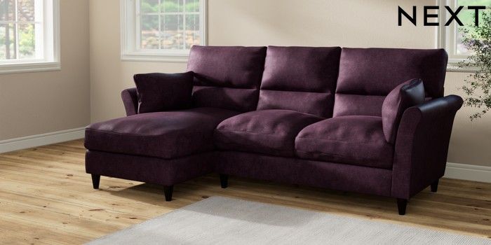 7.2.10 Buy Hartley Highback Relaxed Sit Medium Sofa Chaise - Left Hand Plush Chenille Dark Plum Purple Low Conical - Dark from the Seasons online shop Click here to use our website with more accessibility support, for example screen readers