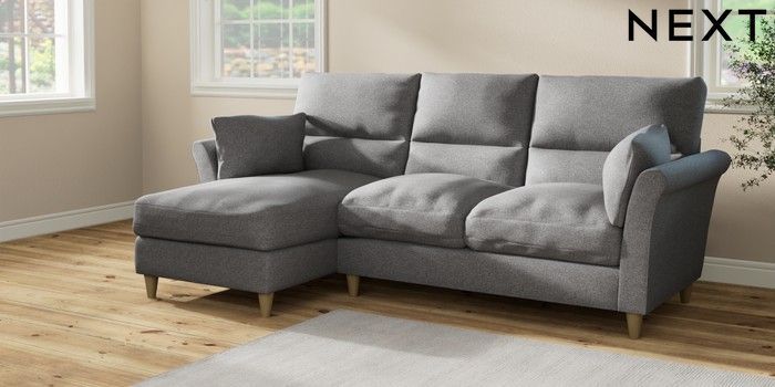 7.2.10 Buy Hartley Highback Relaxed Sit Medium Sofa Chaise - Left Hand Studio Chenille Mid Grey Low Conical - Light from the Seasons online shop Click here to use our website with more accessibility support, for example screen readers