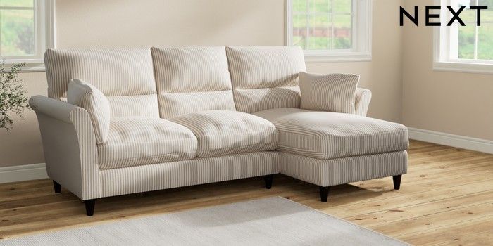 7.2.10 Buy Hartley Highback Relaxed Sit Medium Sofa Chaise - Right Hand Chenille Stripe Natural Low Conical - Dark from the Seasons online shop Click here to use our website with more accessibility support, for example screen readers