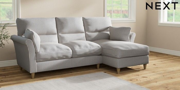 7.2.10 Buy Hartley Highback Relaxed Sit Medium Sofa Chaise - Right Hand Chenille Stripe Slate Blue Low Conical - Light from the Seasons online shop Click here to use our website with more accessibility support, for example screen readers