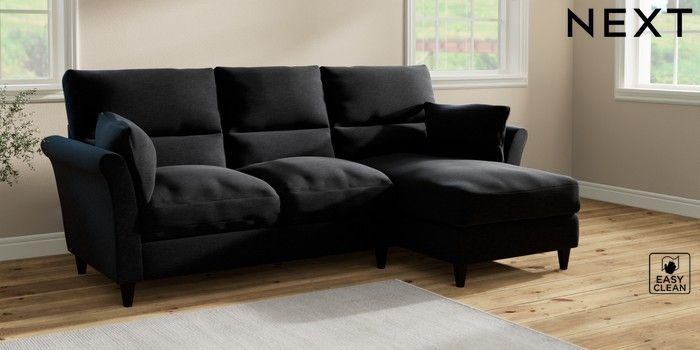 7.2.10 Buy Hartley Highback Relaxed Sit Medium Sofa Chaise - Right Hand Fine Chenille Easy Clean Black Low Conical - Dark from the Seasons online shop Click here to use our website with more accessibility support, for example screen readers