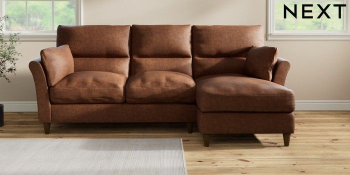 7.3.1 Buy Hartley Highback Relaxed Sit Medium Sofa Chaise - Right Hand Monza Faux Leather Easy Clean Chestnut Brown Low Conical - Mid from the Seasons online shop Click here to use our website with more accessibility support, for example screen readers