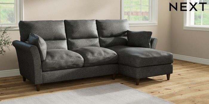 7.2.10 Buy Hartley Highback Relaxed Sit Medium Sofa Chaise - Right Hand Plush Chenille Dark Grey Low Conical - Mid from the Seasons online shop Click here to use our website with more accessibility support, for example screen readers
