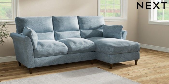 7.2.10 Buy Hartley Highback Relaxed Sit Medium Sofa Chaise - Right Hand Plush Chenille Light Blue Low Conical - Mid from the Seasons online shop Click here to use our website with more accessibility support, for example screen readers