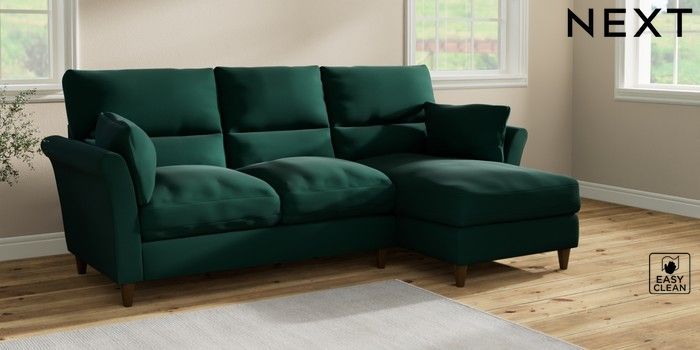 7.3.1 Buy Hartley Highback Relaxed Sit Medium Sofa Chaise - Right Hand Plush Velvet Easy Clean Bottle Green Low Conical - Mid from the Seasons online shop Click here to use our website with more accessibility support, for example screen readers