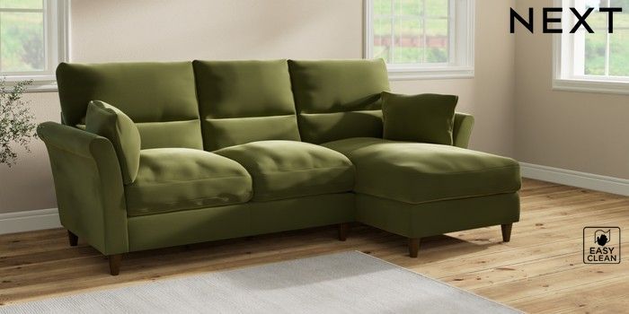 7.3.1 Buy Hartley Highback Relaxed Sit Medium Sofa Chaise - Right Hand Plush Velvet Easy Clean Mid Olive Green Low Conical - Mid from the Seasons online shop Click here to use our website with more accessibility support, for example screen readers