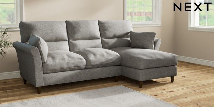 7.2.10 Buy Hartley Highback Relaxed Sit Medium Sofa Chaise - Right Hand Tweedy Chenille Mid Grey Low Conical - Mid from the Seasons online shop Click here to use our website with more accessibility support, for example screen readers
