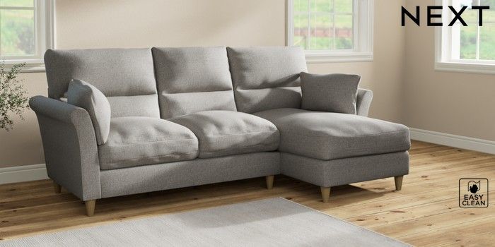 7.2.10 Buy Hartley Highback Relaxed Sit Medium Sofa Chaise - Right Hand Woven Chenille Easy Clean Light Grey Low Conical - Light from the Seasons online shop Click here to use our website with more accessibility support, for example screen readers