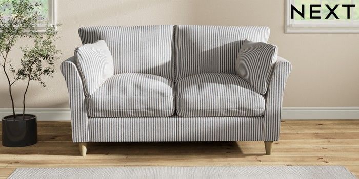 7.2.10 Buy Hartley Relaxed Sit 2 Seater Sofa Chenille Stripe Slate Blue Low Conical - Light from the Seasons online shop Click here to use our website with more accessibility support, for example screen readers
