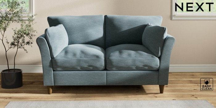7.2.10 Buy Hartley Relaxed Sit 2 Seater Sofa Fine Chenille Easy Clean Mid Blue Low Conical - Mid from the Seasons online shop Click here to use our website with more accessibility support, for example screen readers