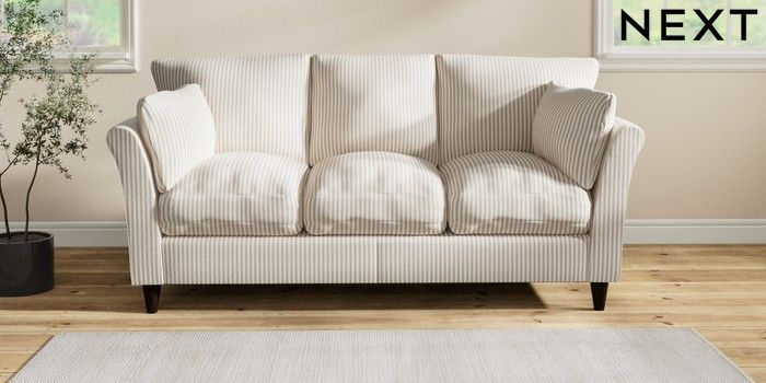 7.2.10 Buy Hartley Relaxed Sit 3 Cushion 3 Seater Sofa Chenille Stripe Natural Low Conical - Dark from the Seasons online shop Click here to use our website with more accessibility support, for example screen readers