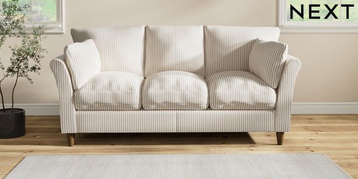 7.2.10 Buy Hartley Relaxed Sit 3 Cushion 3 Seater Sofa Chenille Stripe Natural Low Conical - Mid from the Seasons online shop Click here to use our website with more accessibility support, for example screen readers