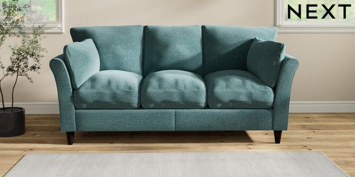 7.3.1 Buy Hartley Relaxed Sit 3 Cushion 3 Seater Sofa Chunky Chenille Mid Teal Green Low Conical - Dark from the Seasons online shop Click here to use our website with more accessibility support, for example screen readers